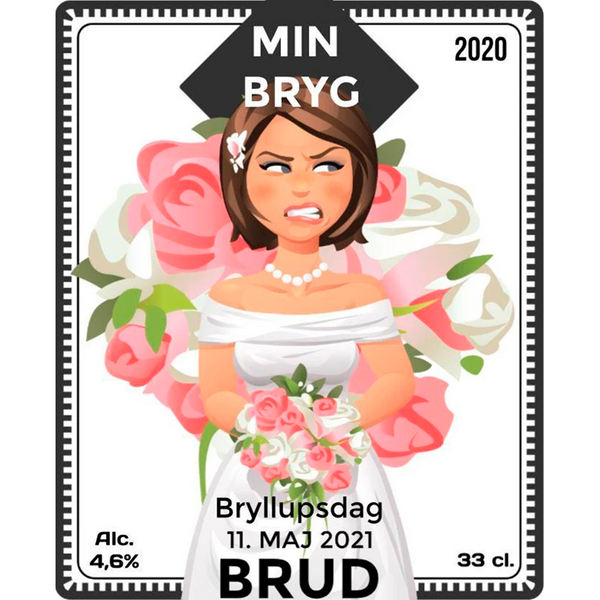 Når den store dag skal smage lidt ekstra af kærlighed og hjemmebryg. Sur Brud har en søster i Glad Brud etiketten. Design din egen unikke øletiket med denne skabelon - Printet på professionel folie med aftagelig lim.